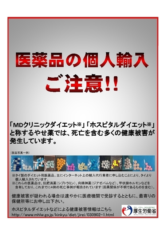 ⇒向精神薬や肥満抑制薬が含まれており、死亡例を含む重大な健康被害が発生しています。