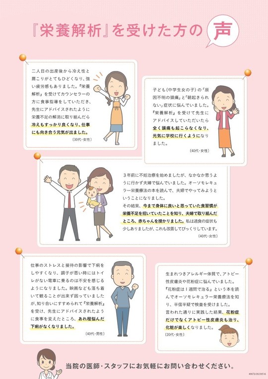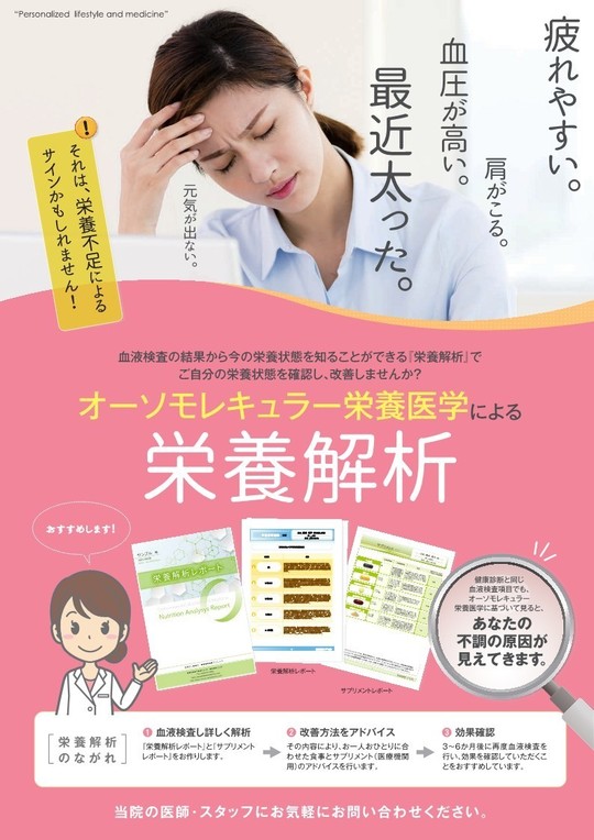 『今まで薬を飲んでもなかなか病気や不調が改善されなかった』という悩みをお持ちの方、栄養障害が隠れている場合もあります。どうぞご相談下さい。